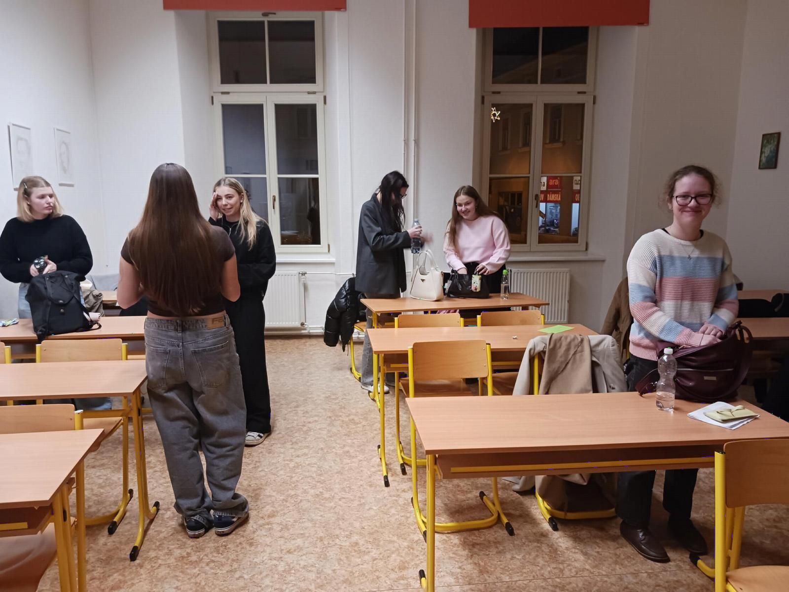Nelze se tedy divit, že v pátek a v sobotu 12.-13.12.2025 se na 80 studentů napříč všemi obory dostavilo do školy, aby úspěšně složili všechny části zkoušek ověřující jednotlivé dovednosti (mluvení, psaní, porozumění čtenému, porozumění slyšenému a u vyšších úrovní i užití angličtiny).