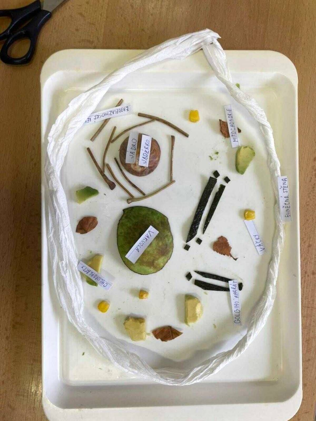 Ve středu 24. září sestavovali studenti G5.A v rámci výuky biologie model buňky z běžně dostupných materiálů.