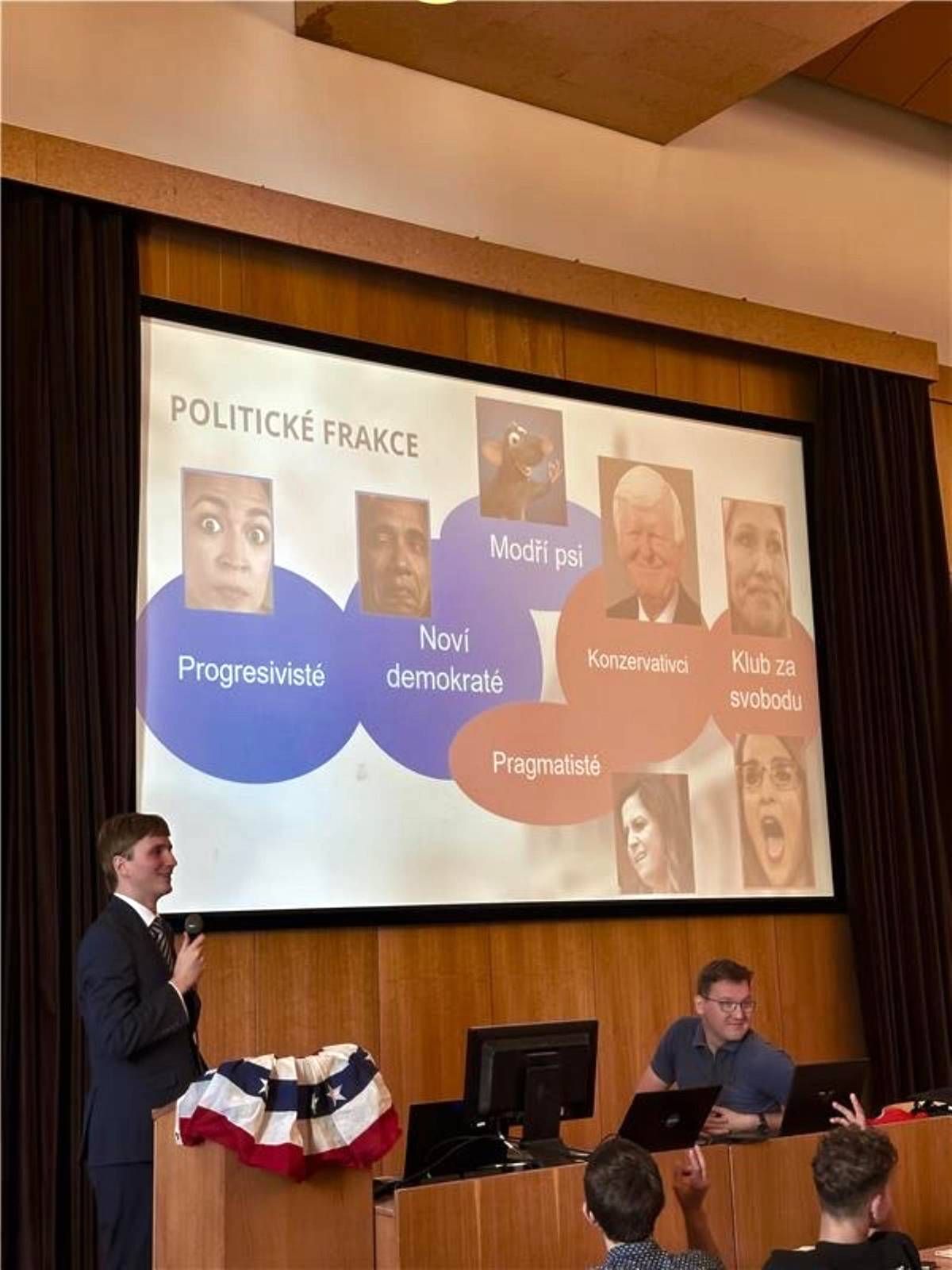 AmKon patří mezi nejpropracovanější z modelových zasedání, neboť účastníci mají na výběr zastupovat nejen senátory a poslance jednotlivých stran a frakcí v Kongresu, ale mohou si také vyzkoušet, jaké je to být lobbistou či novinářem. Já jsem konkrétně zastupovala stát Illinois ve frakci Nových demokratů v senátním Výboru pro justici.