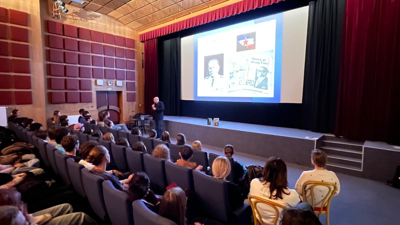 V listopadu se v sále znojemského kina několik středoškolských tříd zúčastnilo besedy s Vladimírem Dzurem o válečných zločinech v bývalé Jugoslávii.