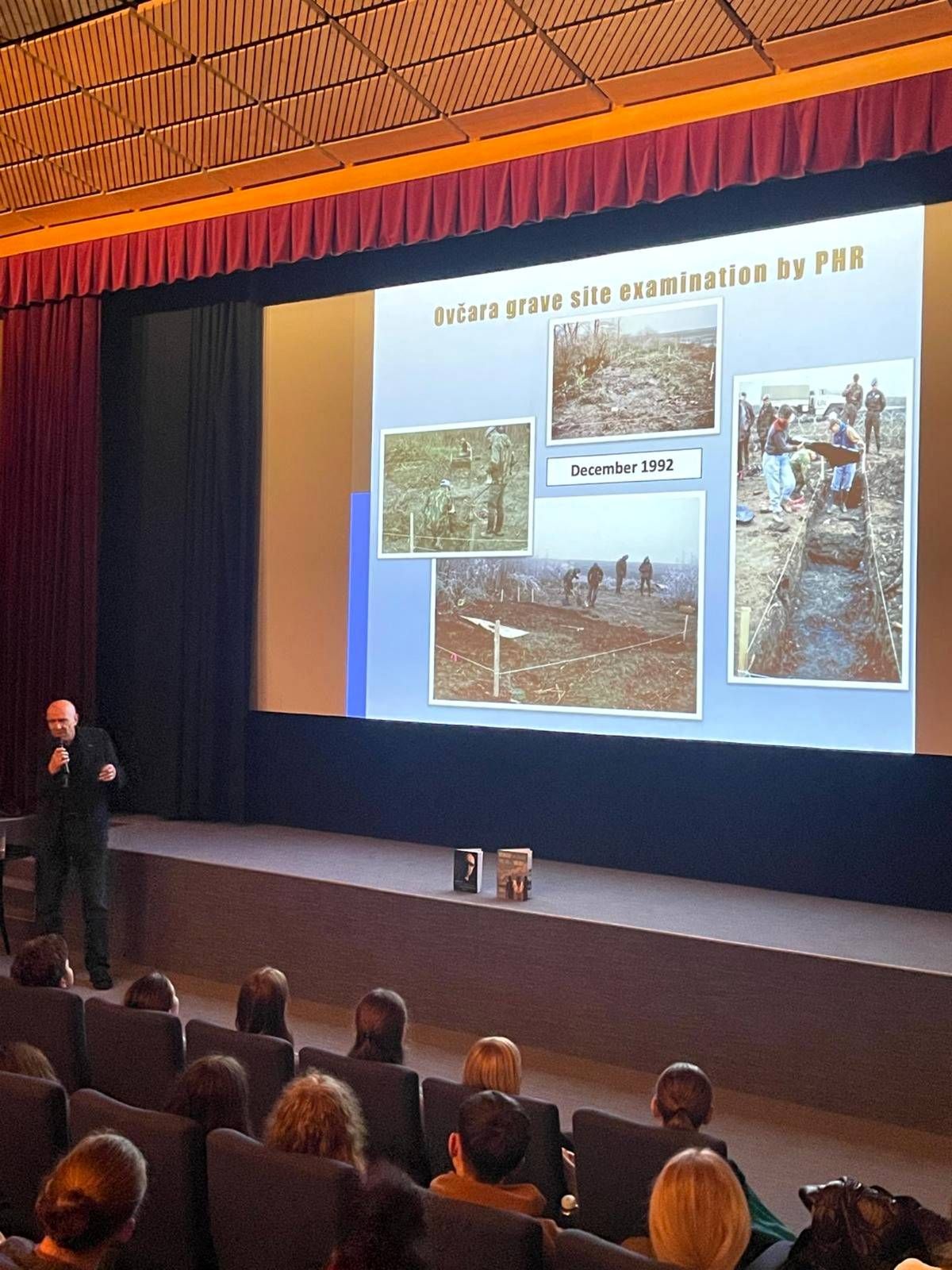 Vladimír Dzuro představil studentům proces vyšetřování, historické souvislosti a vztahy mezi zeměmi bývalé Jugoslávie a popsal i psychickou náročnost profese spojenou s událostmi na Balkáně. Studenti měli možnost díky dobovým fotografiím a záběrům nahlédnout pod ruce vyšetřovatelů a snad i lépe pochopit zrůdnost činů válečných zločinců.