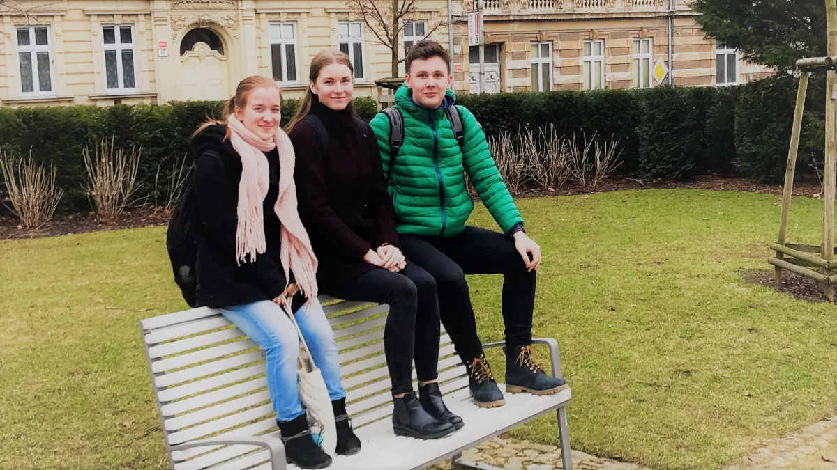 O studentech gymnázia si mnozí myslí, že se musí věnovat pouze studiu. Není tomu tak. Jak lze spojit školu a náročnější koníček, si povídali studenti ze třídy G5.A. Na otázky svých spolužáků odpovídal výrazný ADAM ŠTRAUS, nenápadná KÁJA KOMÁRKOVÁ, která občas trefně doplnila odpověď, všechno takticky až diplomaticky objasňuje ADÉLA BAJKOVÁ. Všichni tři hrají v cimbálové muzice Veltlínek, Kája na zobcovou flétnu, (na obrázku vlevo) Adéla (uprostřed) na cimbál a Adam na basu. Samozřejmě také zpívají a tančí.