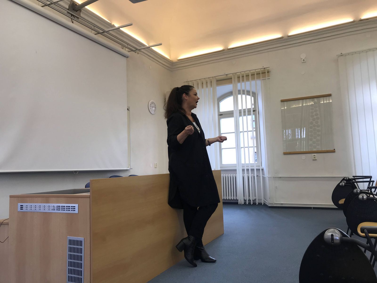 Její vyprávění i následná beseda byly vedeny v příjemné a neformální atmosféře. Úvodní vyprávění paní Martiny mapovalo její cestu k divadlu, dále k pedagogické práci na DAMU a samozřejmě se hovořilo i o nové knize Mají v nebi skleničky? Dotazy směřovaly k důležitým životním rozhodnutím jak v profesním, tak i v osobním životě, k zákulisí hereckého povolání, k aktuálnímu a plánovanému uměleckému programu.