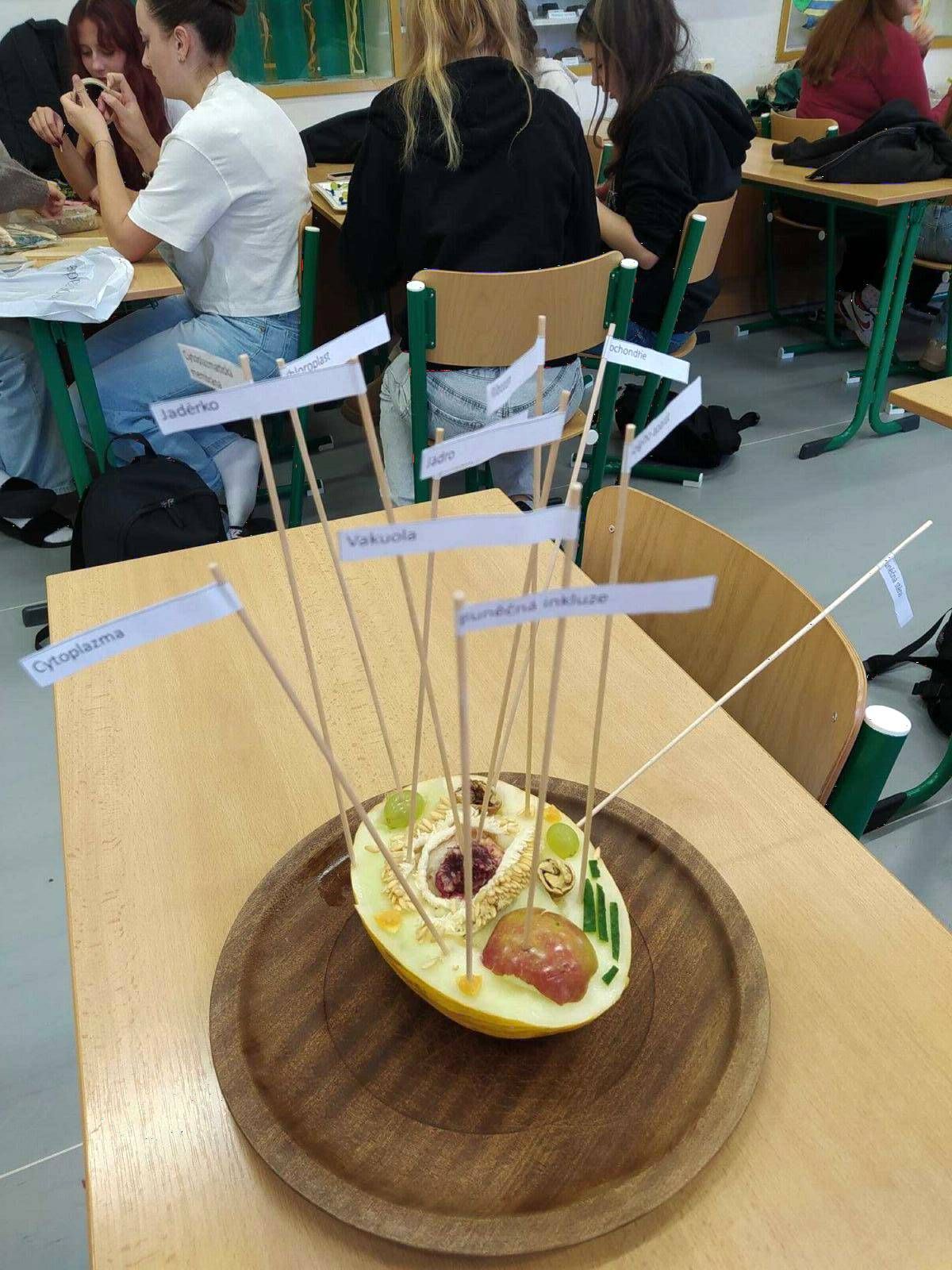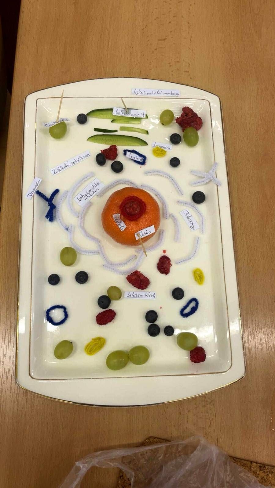 Ve středu 24. září sestavovali studenti G5.A v rámci výuky biologie model buňky z běžně dostupných materiálů.