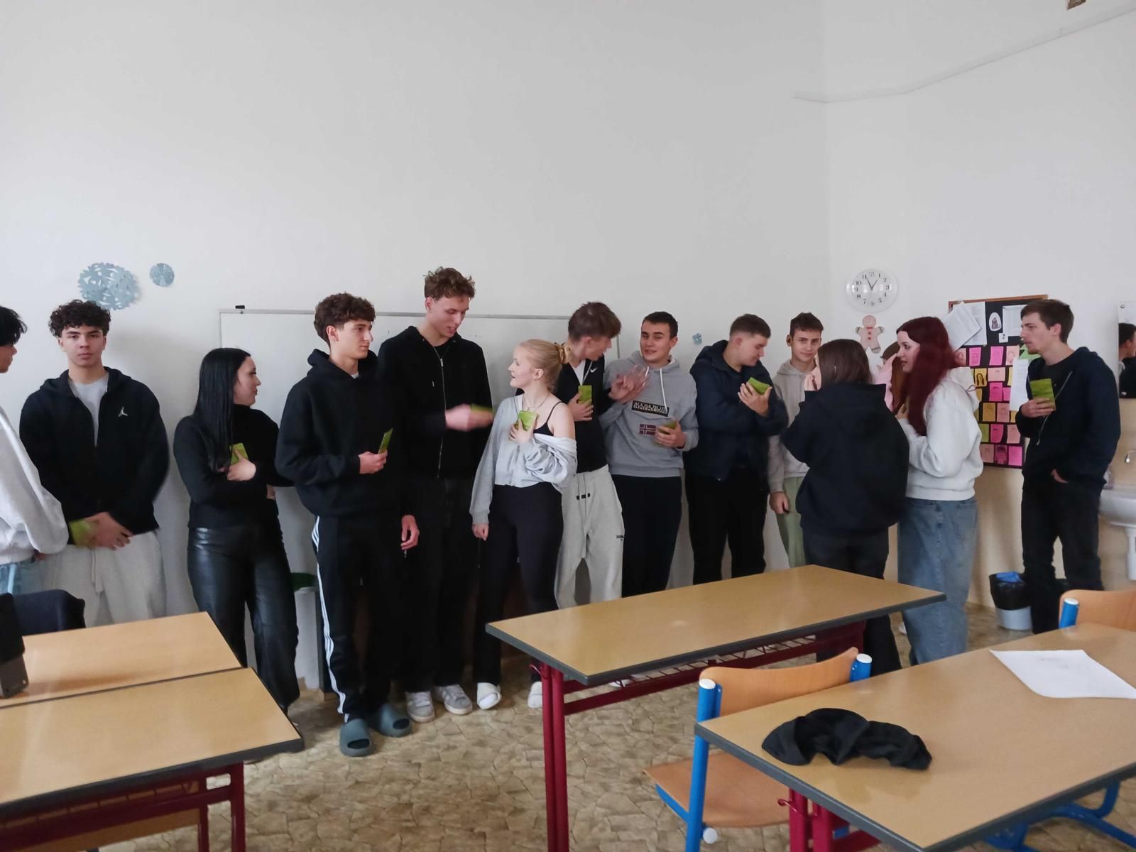 Závěr vyučování byl věnován týmové hře, která měla posílit komunikační dovednosti, spolupráci a strategické myšlení. Žáci museli společně hledat řešení, rozhodovat se jako tým a efektivně si rozdělovat role. Aktivita ukázala, jak důležité je umět spolupracovat, naslouchat druhým a sdílet nápady.