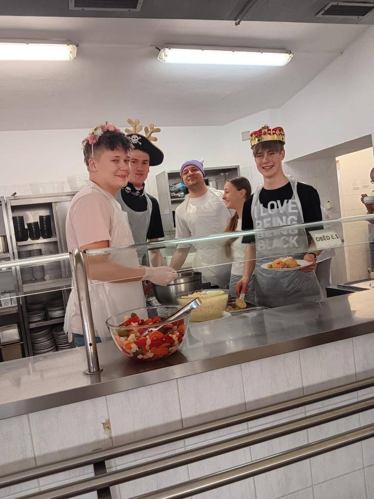 Společně s klukama jsme strávili jeden den pomocí ve školní jídelně a byla to zajímavá zkušenost. Vyzkoušeli jsme si všechno od přípravy jídla až po úklid. Po tomhle si člověk rychle uvědomí, že to není úplně brnkačka. Hlavně si ale odnese respekt k lidem, kteří to dělají každý den. Díky dámy a pane vedoucí.