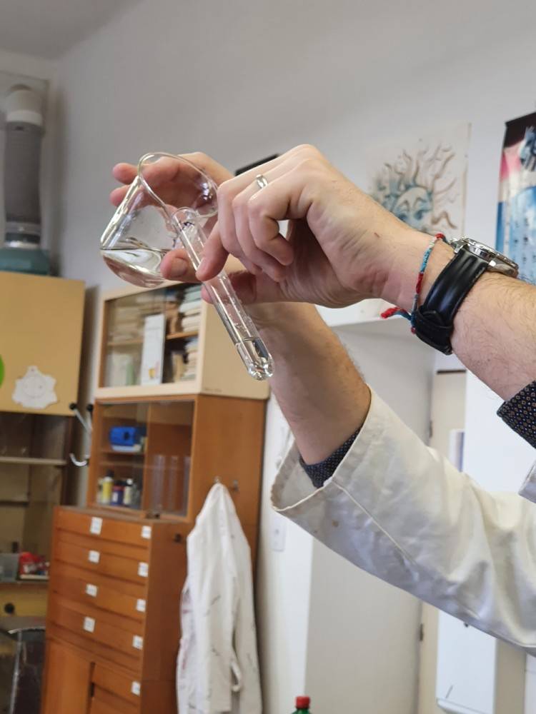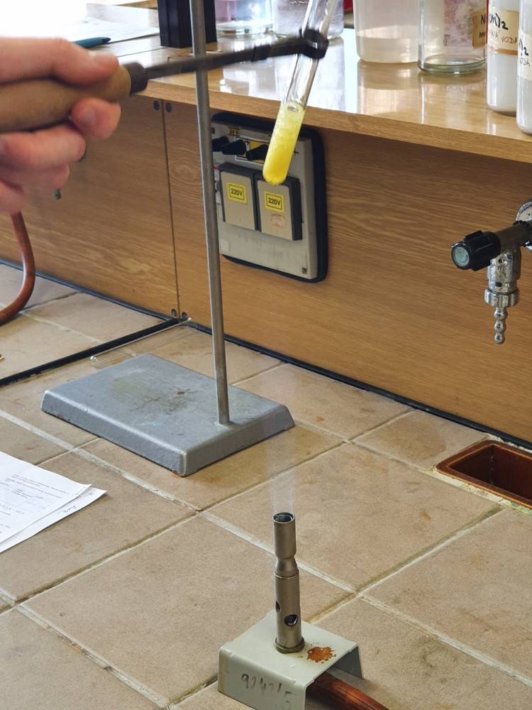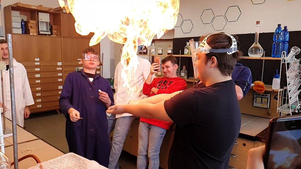 Úterý bylo ve znamení další zábavy, nových zkušeností a znalostí. S panem ředitelem jsme navštívili chemickou laboratoř na hlavní budově. Zkoušeli jsme různé reakce chemických látek (železa, kyseliny chlorovodíkové, peroxidu vodíku, amoniaku), nakonec jsme se dočkali i ohně, což jsme si přáli. Na závěr jsme prezentovali bezpečnostní řád chemické laboratoře z našeho úhlu pohledu.