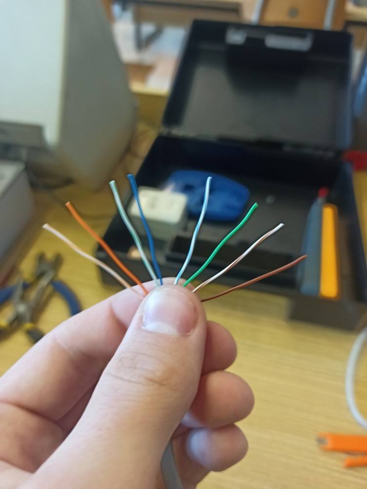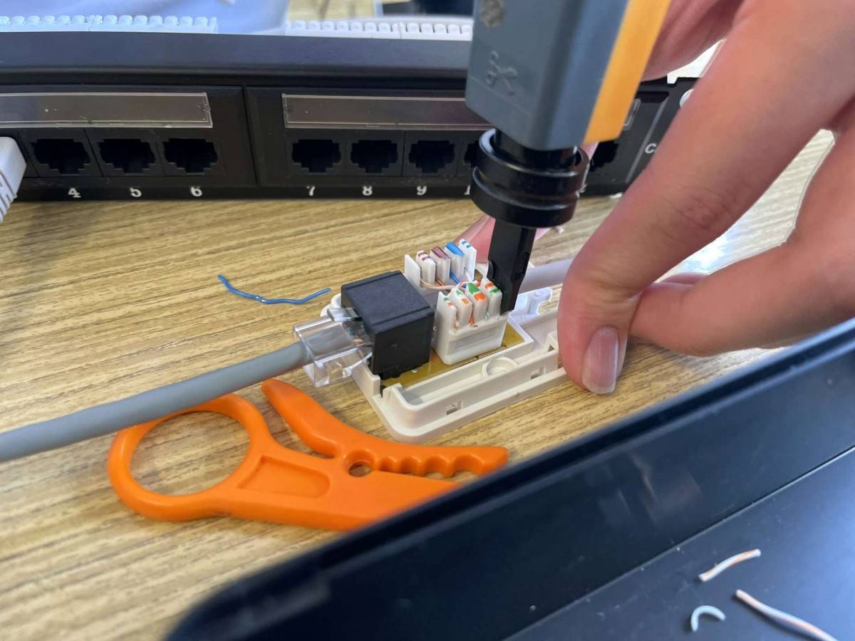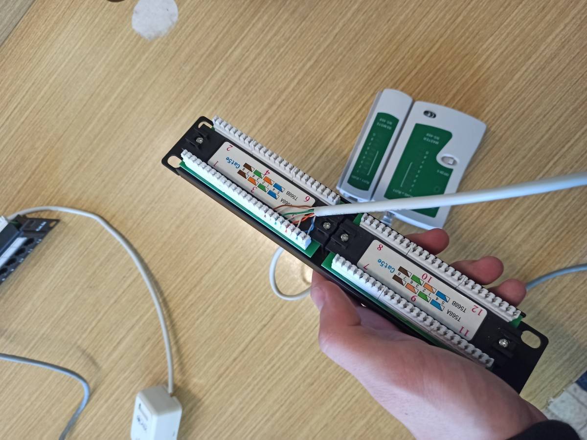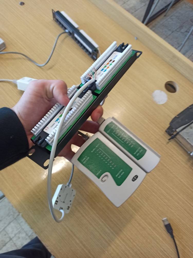 Čtvrtek byl ve znamení krimpování (cvakání) koncovek RJ-45, díky němuž jsme byli schopni zapojit zásuvku, patch panel a samotný síťový kabel. K dispozici jsme měli školní síťařské kufříky, v nichž je všechno potřebné vybavení. Zbytek dne jsme strávili diskuzí o etickém hackingu a měli možnost položit další dotazy, které nás z této oblasti zajímají.