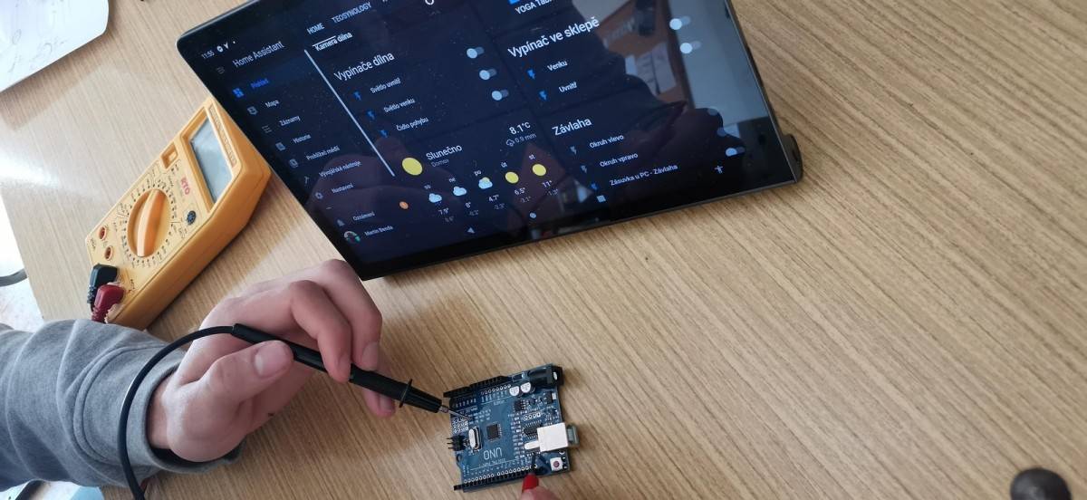 V pátek jsme procvičovali základní praktické dovednosti studenta IT, a to pájení spojů elektrických obvodů. Dále jsme se celý den zabývali chytrou domácností (IoT). Zkusili jsme si propojit mikropočítač ESP32 s různými druhy zařízení a to např. s teploměrem, chytrou zásuvkou, kamerou apod. To všechno jsme nakonec propojili díky Raspberry Pi, na kterém jsme nainstalovali Home Assistant.