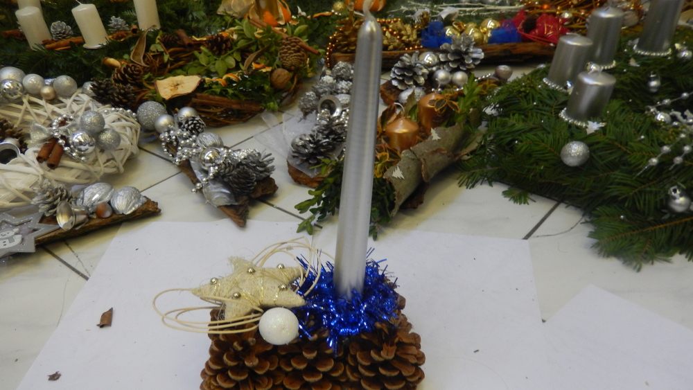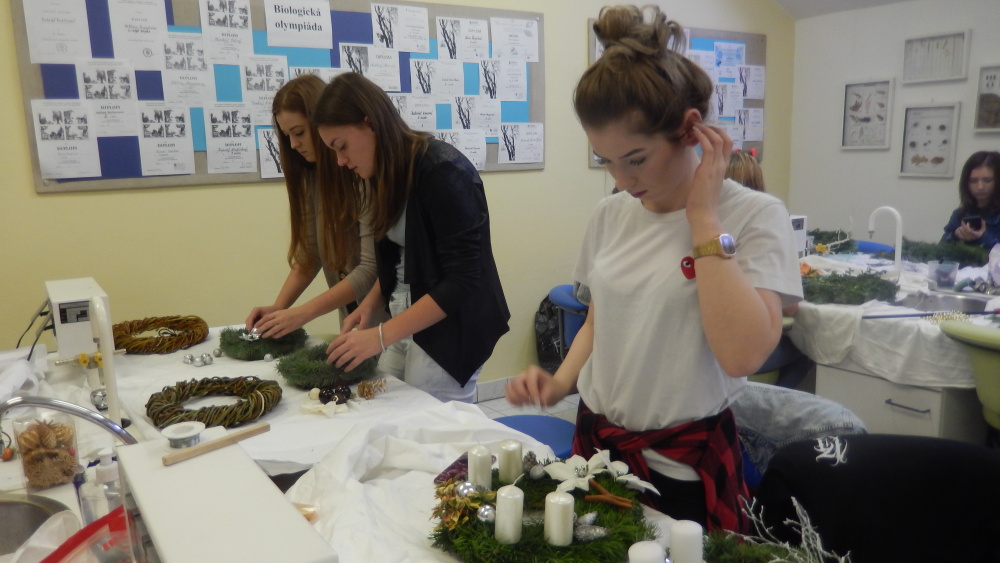 V dopoledních hodinách dne 5. 12. 2017 v biologické laboratoři zněly koledy, vonělo jehličí, laboratorní stoly byly plné větviček jehličnatých stromů, korpusů, svíček, přírodních a třpytivých přízdob. Nad tím vším se skláněly studentky oboru Sociální činnost. Přemýšlely a zkoušely realizovat svoje nápady. Tvořily vánoční vazby.