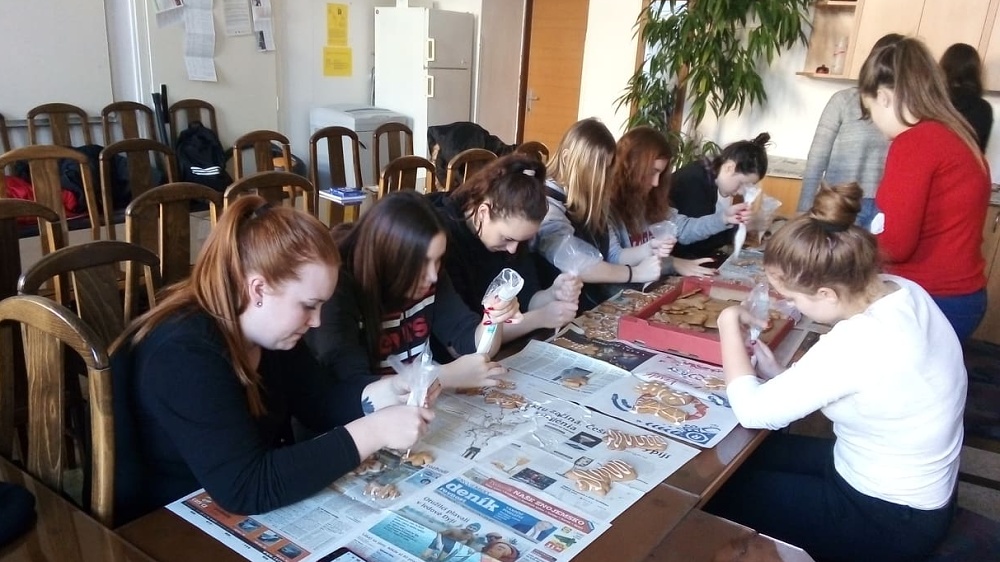 vlastně navazuje na Andělské pečení a takřka 250 andělských perníků je již nazdobeno. V příštím týdnu je spolu s obrázky od dětí z spolupracujících mateřských škol rozdáme v Léčebně dlouhodobě nemocných, v Aktivizačním centru pro seniory u Mikulášského kostele či v Dětském centru Znojmo. Velké poděkování patří studentkám a studentům P2B, které se aktivně zapojily nejen do jejich pečení, ale i zdobení.