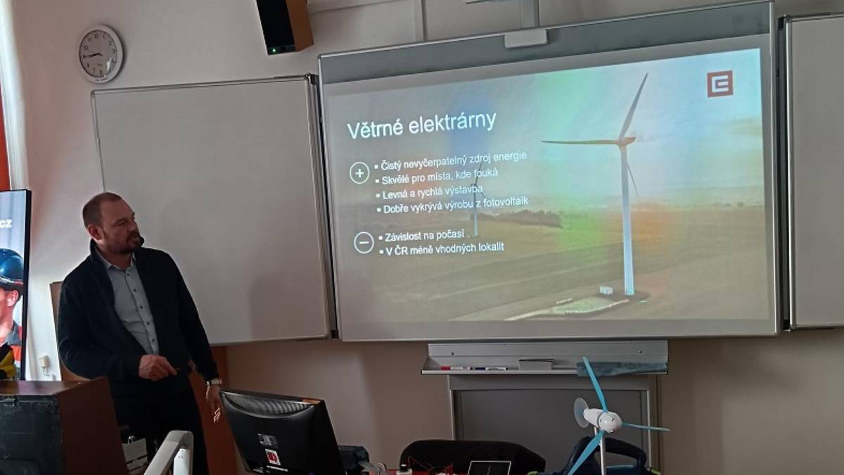 V rámci spolupráce s Jadernou elektrárnou Dukovany jsme se zúčastnili besedy s názvem "Setkání s energií". Během programu nám lektor Lukáš Radil s asistentem Tomášem Hejlem vysvětlili principy fungování různých typů elektráren – od jaderných přes uhelné až po obnovitelné zdroje, jako jsou vodní nebo větrné elektrárny.
