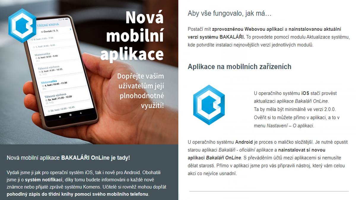 Nová aplikace Bakaláři