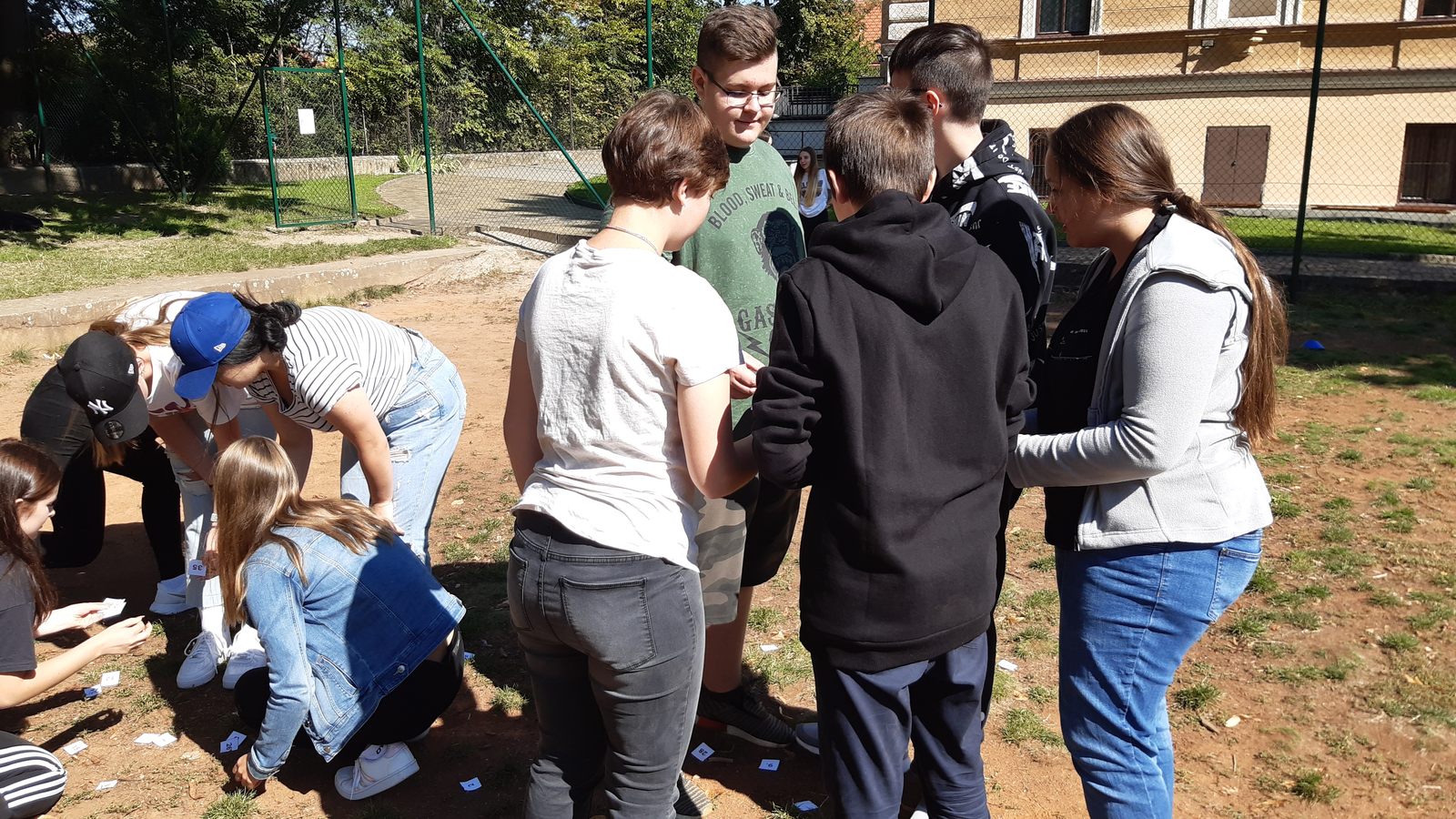 Náš adaptační kurz začal Questem, neboli hledáním pokladu v Národním parku Podyjí. Po shromáždění před školou jsme vyrazili k Vlkově věži, kde na nás čekala paní Leischnerová. Ta nás vzala do Kapucínské zahrady, kde nám vysvětlila, co nás čeká, a tam také začala naše cesta za pokladem. Náš první úkol bylo podle mapy projít památky Znojma, kde jsme hledali odpovědi na otázky, abychom doplnili tajenku. Po hodině jsme vše zdolali a mohli vyrazit na Hradiště, které nám vyšlo v tajence. Poklad jsme sice nenašli, ale alespoň jsme se dozvěděli povídku o pastýři a jeho ovečkách. Při návratu byli všichni spokojeni s úsměvem na rtech. Myslíme si, že tato aktivita nám pomohla se lépe seznámit.